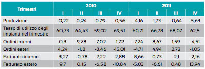 Gli ordini esteri a fine 2011 rappresentano circa il 4,38% del totale degli ordini: il peso dell'estero sul totale resta quindi ancora limitato a conferma di un legame forte con le dinamiche del mercato interno, legate anche ad una situazione di incertezza e limitato consolidamento della domanda anche a fronte dell'impatto delle misure adottate dal Governo a fine anno.