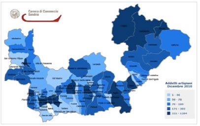 Figura 10.6 – Localizzazione delle imprese artigiane - concentrazione n° di addetti al 31/12/2010 – Fonte: SMAIL CCIAA Sondrio