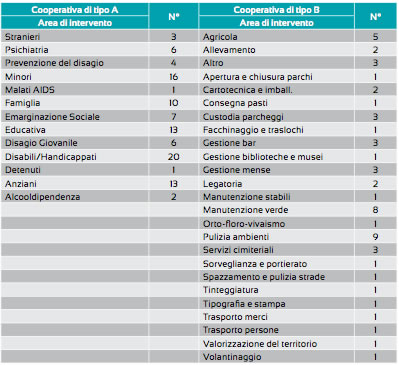 Per inquadrare il contesto delle cooperative sociali ci sembra sempre utile ricordare come premessa la distinzione, nelle cooperative sociali, fra le cooperative di tipo A e quelle di tipo B. Le prime sono quelle che si occupano della gestione di servizi socio - sanitari, assistenziali ed educativi, mentre le seconde quelle che svolgono attività diverse - agricole - manifatturiere, commerciali o di servizi - finalizzate all'inserimento lavorativo di persone svantaggiate. E' richiesto dal loro Statuto di perseguire l'interesse della comunità alla promozione umana e all'integrazione sociale dei cittadini. Le cooperative sociali possono agire anche in forma consorziata: a Sondrio si registra ancora la presenza di un solo consorzio, Sol.Co.