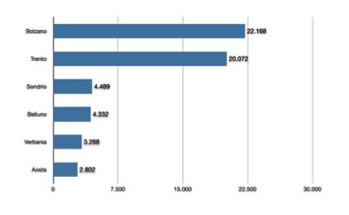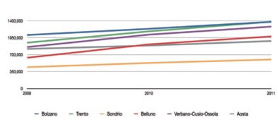 Nonostante tale aumento, se ci si confronta con altri territori, il rapporto fra sofferenze ed impieghi si mantiene ancora fra i più bassi delle aree alpine[4].