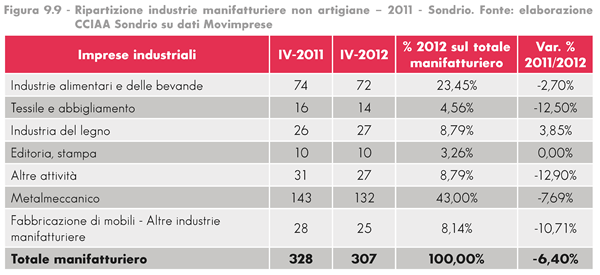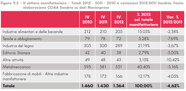 Figura 9.1 – Fotografia del settore manifatturiero nel 2012. Fonte: elaborazione CCIAA Sondrio su dati Movimprese