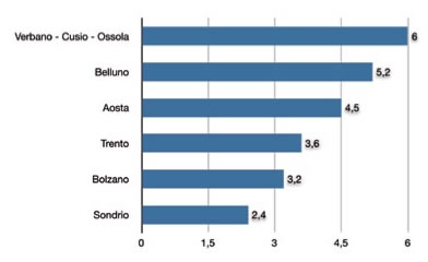 Nonostante tale aumento, se ci si confronta con altri territori, il rapporto fra sofferenze ed impieghi si mantiene ancora fra i più bassi delle aree alpine[4].
